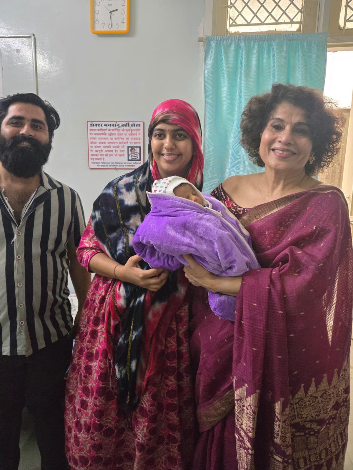 Dr. Malti Bhojwani with a happy mother and newborn baby at Malti Hospital & Test Tube Baby Centre, Bhopal.