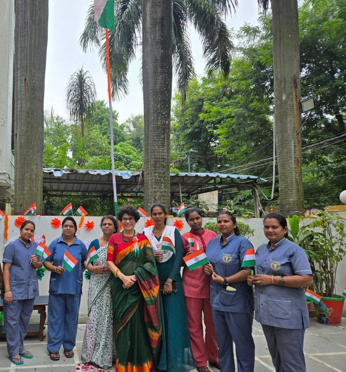 Dr. Malti Bhojwani and the medical team celebrating Independence Day at Malti Hospital & Test Tube Baby Centre, Bhopal.